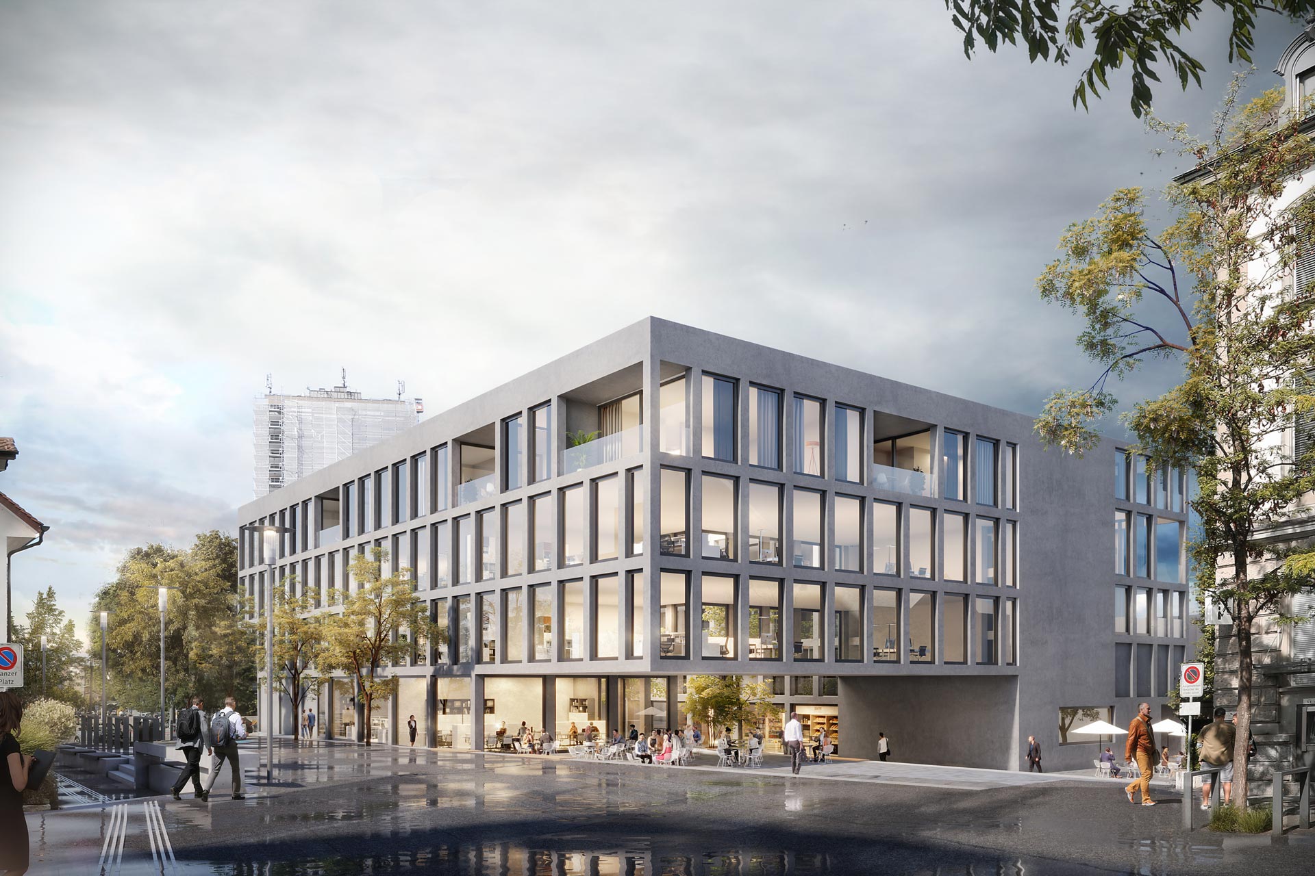An der Hauptstrasse, der hochfrequentierten Achse der Stadt Kreuzlingen, gilt es eine Strategie für eine moderne und effiziente Liegenschaft zu entwickeln. Eine qualitätvolle Gestaltung der umliegenden Platzsituationen als Begegnungszonen sollen das Konzept des „Boulevards“ als unmittelbarer Verbindung zu Konstanz sowie eine stärkere Verbindung von Stadt und See in dieser Zone unterstützen.